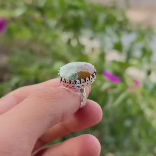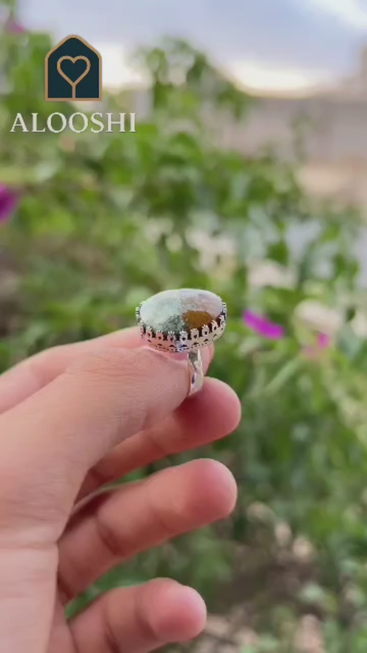 خاتم عقيق طحلبي فضة نسائي عيار 925 – عمل يدوي فاخر