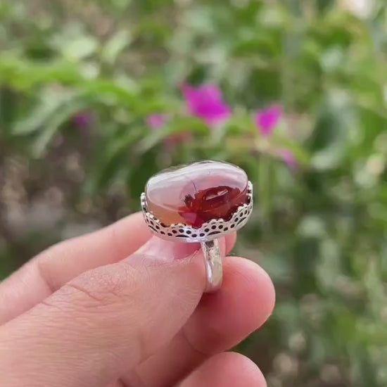 خاتم عقيق فضة نسائي - HKR-R0009
