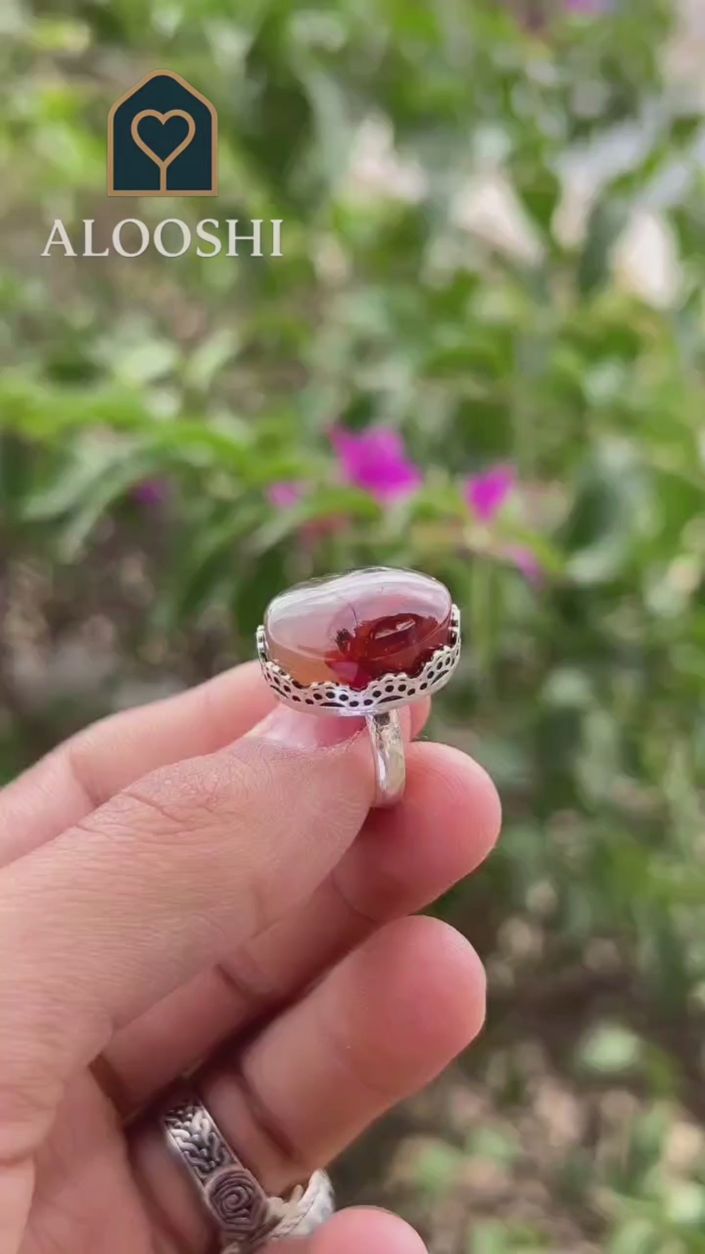 يزينه حجر العقيق المرسم الزهري اليماني النادر، برسوخه الطبيعي وألوانه الساحرة التي تمنح كل قطعة طابعًا فريدًا وأنيقًا.