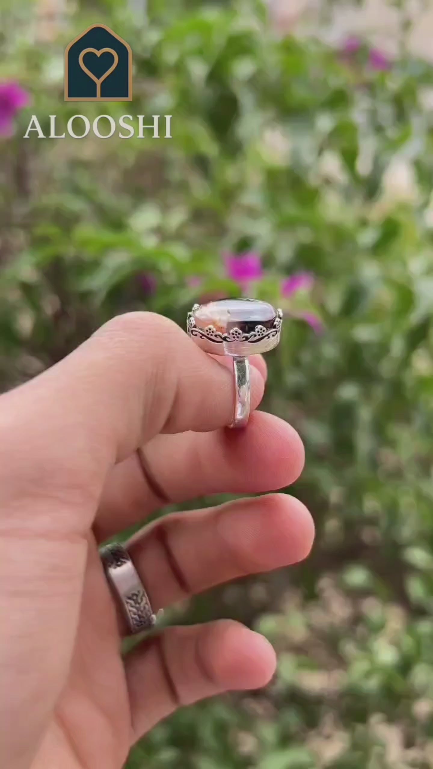يتوج بحجر العقيق المصور اليماني النادر، المعروف بتفاصيله الطبيعية الفريدة التي تجعل كل خاتم قطعة استثنائية لا تتكرر.