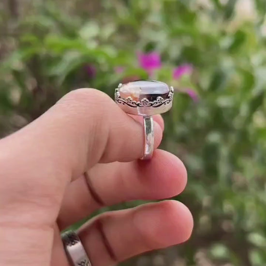 خاتم عقيق فضة نسائي - HKR-R0012