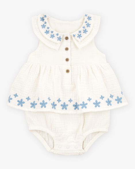 يبدو اللباس كالفستان الأصلي ولكنه عملي كبدي! يتميز بتطريز أنيق على وأزرار قوية عند الأرجل لتسهيل التغيير بسرعة وسهولة، مما يسمح بتجهيزاتك الصغيرة بسرعة وتمكنك من ذلك. خامة قطنية غزّة ناعمة 100% ، الجيل الجديد لبشرة الطفل، مع تصميم مريح مريح في نفس الوقت.