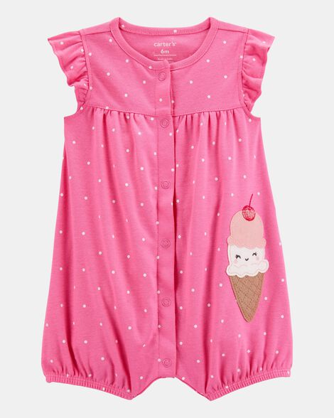 رومبر عملي ولطيف لطفلتك الصغيرة، تصميم ممتاز مع الاهتمام بأدق التفاصيل. يأتي بأزرار ريش كاملة مع أزرار إضافية عند قمصان لتسهيل التغيير، وأكمام قصيرة رقيقة تضفي لمسة أنثوية. خامة قطنية ناعمة من ملاكمة الأطفال تجعلكم من ملاكمة البضائع اليوم ، مع طباعة ممتعة على شكل آيس كريم كامل المرح للعب الفوري.