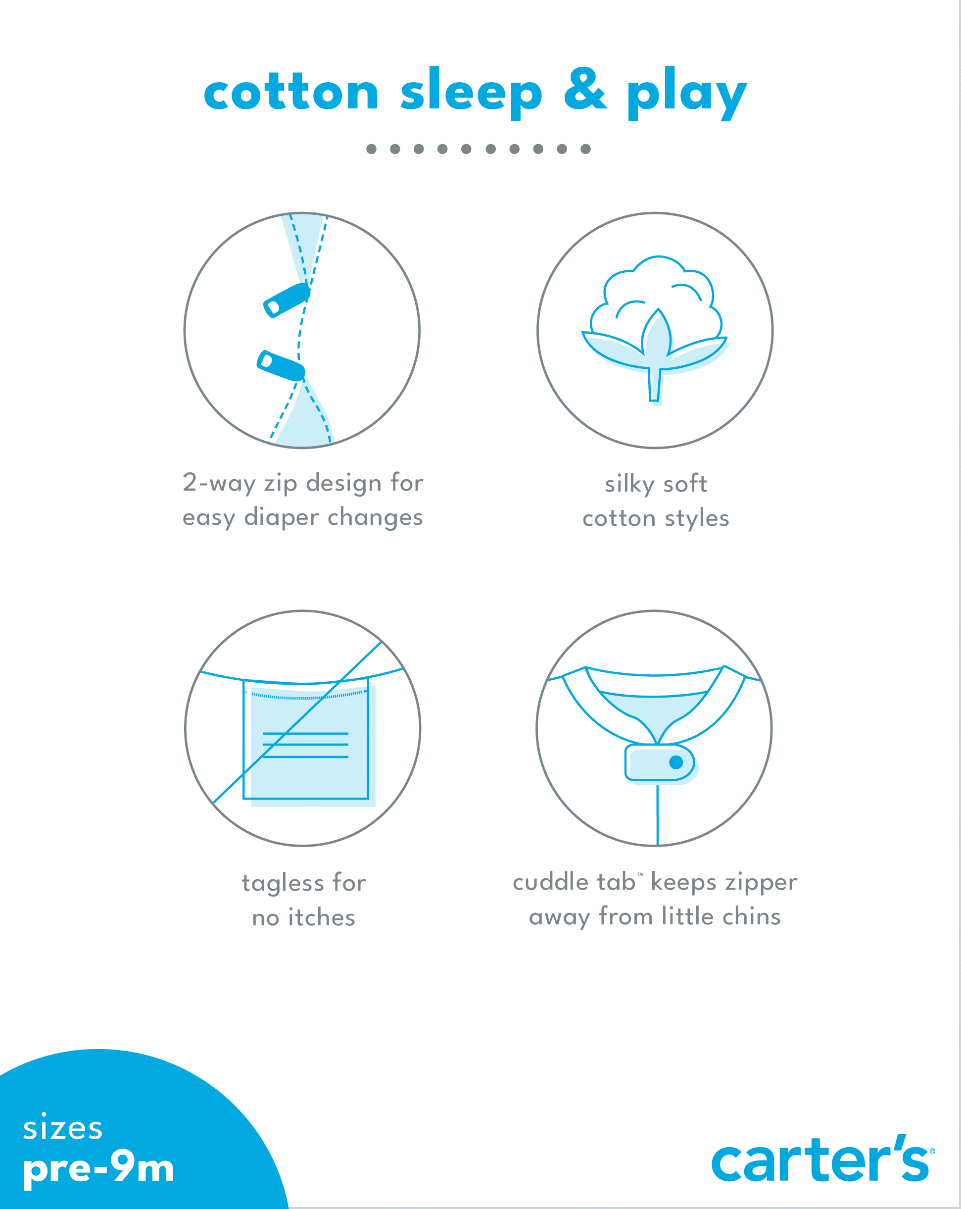 صُممت هذه القطعة المريحة والناعمة للغاية لتوفر لك الراحة طوال اليوم، من النوم إلى اللعب، وهي مثالية للعب أو الاستلقاء على البطن أو أي وقت! كما أنها مزودة بسحاب مقلوب، مما يضمن دفء ذراعي طفلك وبطنه أثناء تغيير الحفاضات.