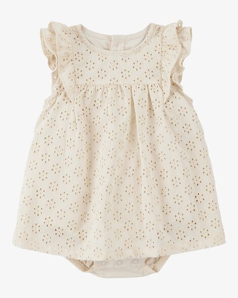 👶🤎 فستان بودي قطن للأطفال – كريمي/بني