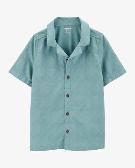 قميص أطفال بأكمام قصيرة وأزرار وطبعة شيفرون - أزرق مخضر