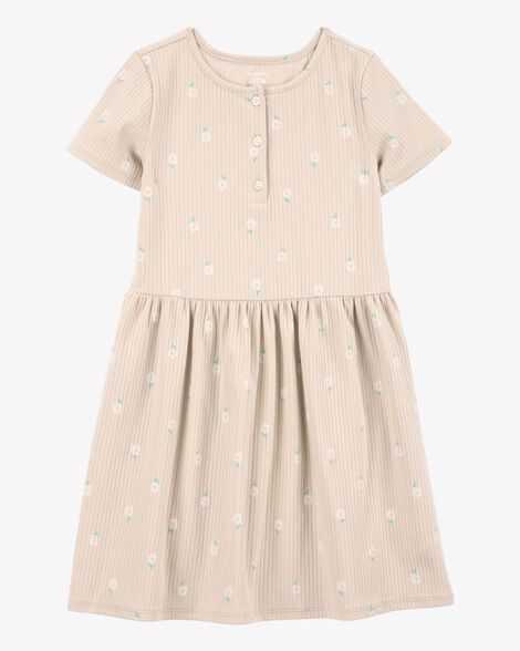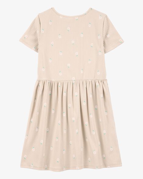 فستان أطفال بأكمام قصيرة مزهر - زهري
