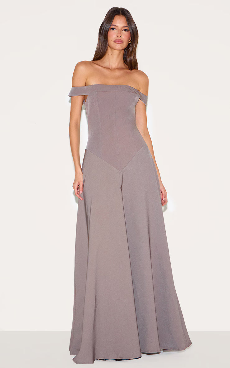 مصنوع من قماش بلون الفطر بقصّة أنيقة، وفتحة صدر مكشوفة، وخصر على شكل حرف V، وطول ماكسي. نسّقي هذا الفستان الطويل المكشوف الخصر على شكل حرف V مع كعب عالٍ بلون محايد وإكسسوارات بسيطة لإطلالة لا تُنسى.