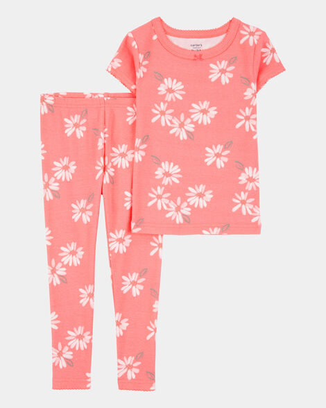 بيجامات قطنية مريحة 100% مزينة بالزهور، قطعتين، للبنات الصغيرات - مرجاني